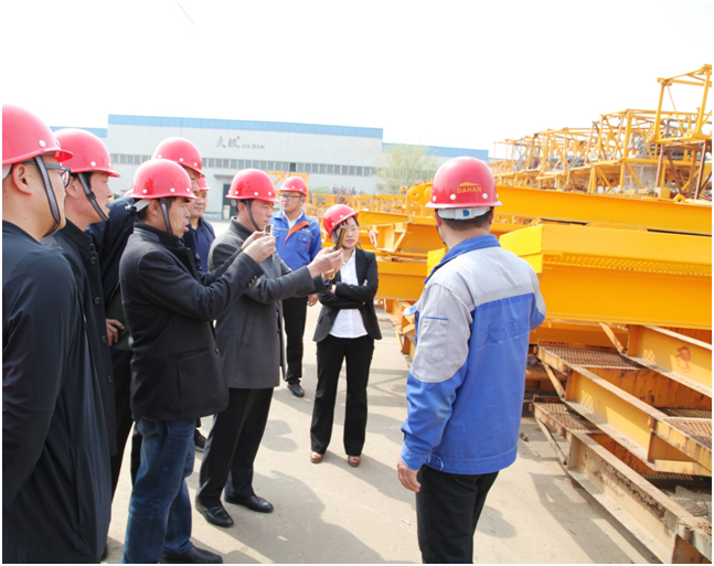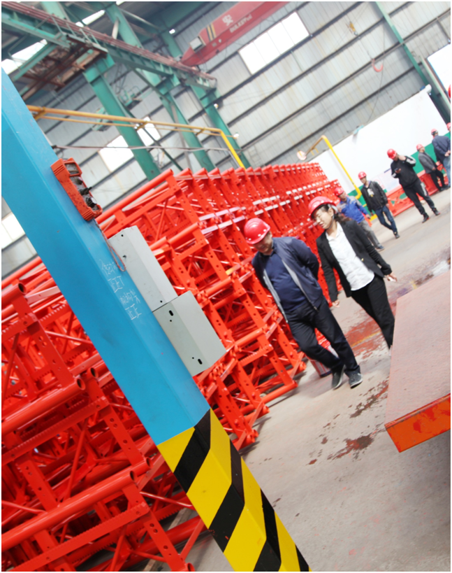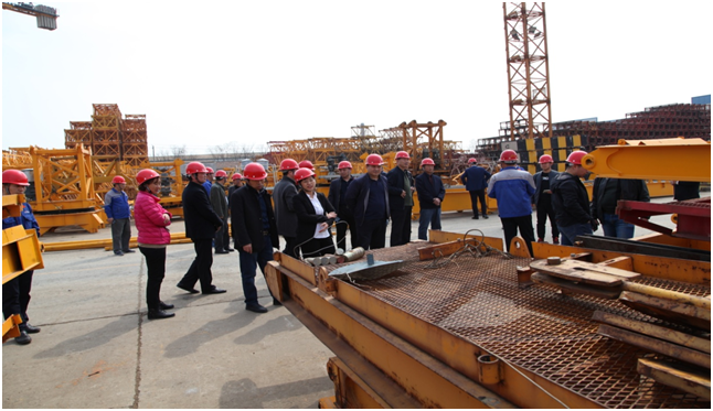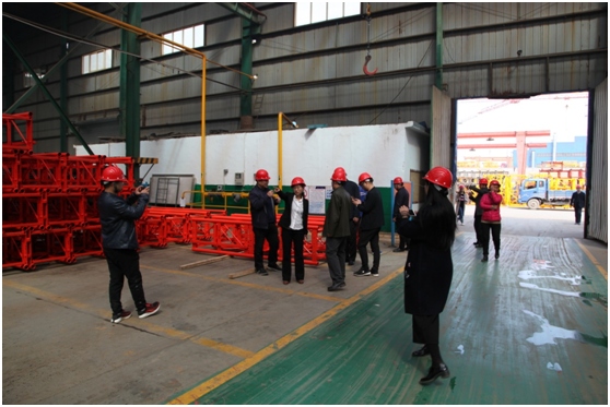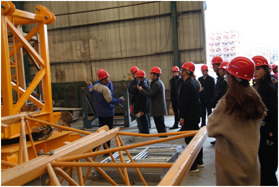 技術(shù)人員陪同質(zhì)安中心主要領(lǐng)導(dǎo)和各單位負(fù)責(zé)人參觀了大漢股份的塔機維修車間。