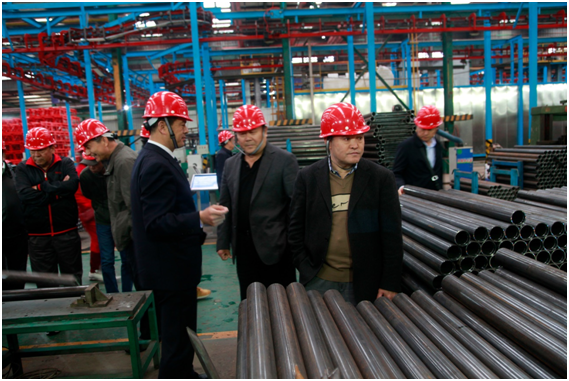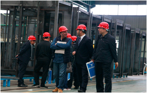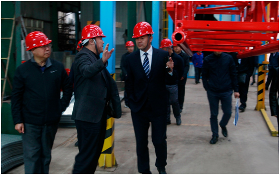 康與宙董事長陪同北京住建委魏巍參觀吊籠生產(chǎn)線
