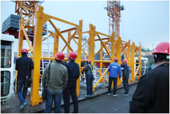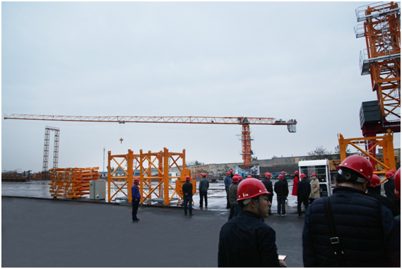 全體與會嘉賓參觀大漢股份專為裝配式建筑研發(fā)的平頭片式7025、7530塔式起重機(jī)(二)