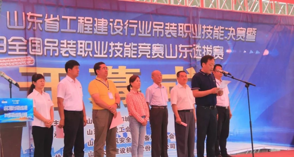 16日上午8:30分競賽開幕式正式拉開帷幕,山東省建筑安全與設(shè)備管理協(xié)會(huì)會(huì)長杜海濱主持開幕式,來自全省16城市的16支參賽隊(duì)和裁判組舉行了入場儀式,蒞臨開幕式的主要領(lǐng)導(dǎo)和嘉賓有:中國建筑業(yè)協(xié)會(huì)機(jī)械管理與租賃分會(huì)會(huì)長張燕娜、北京起重吊裝及拆卸工程專業(yè)技術(shù)委員會(huì)主任孫曰增、山東省住房和城鄉(xiāng)建設(shè)廳執(zhí)法監(jiān)察局二級(jí)調(diào)研員張英明、山東省建設(shè)工會(huì)副主席邵永立、山東省建設(shè)工會(huì)四級(jí)調(diào)研員賀培港等,公司董事長康與宙,總經(jīng)理張茹登上主席臺(tái)參加開幕式。主辦、承辦和協(xié)辦單位的相關(guān)領(lǐng)導(dǎo)、行業(yè)專家,參賽選手、大賽嘉賓及現(xiàn)場服務(wù)人員共計(jì)160余人共同見證了這場規(guī)格高、專業(yè)性強(qiáng)的競技大賽。
