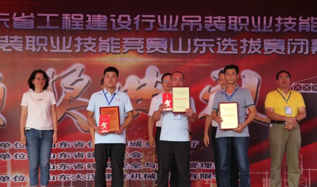 經(jīng)過激烈的角逐,“大漢杯”山東省工程建設(shè)行業(yè)吊裝職業(yè)技能決賽暨2019全國競賽山東選拔賽圓滿閉幕。16支參賽隊(duì)75名專業(yè)選手通過理論考試和實(shí)操比武,山東濟(jì)南市代表隊(duì)、青島市代表隊(duì)、日照市代表隊(duì)分別摘得技能競賽團(tuán)體獎(jiǎng)前三強(qiáng)。山東大漢建設(shè)機(jī)械股份有限公司獲得山東省建設(shè)工會(huì)、山東省建筑安全與設(shè)備管理協(xié)會(huì)頒發(fā)的“突出貢獻(xiàn)獎(jiǎng)”。來自濟(jì)南市代表隊(duì)的李寶順從參賽的眾多塔機(jī)頂尖高手脫穎而出,憑借精湛的技術(shù)和穩(wěn)定的臨場發(fā)揮,摘得本此吊裝大賽第一名的桂冠,并獲得由山東省總工會(huì)授予的“山東省五一勞動(dòng)獎(jiǎng)?wù)隆保粷?jì)南市代表隊(duì)的劉順卿、董波,日照市代表隊(duì)的李高華分別獲得二等獎(jiǎng);青島市代表隊(duì)的馬云勝等15名選手獲得三等獎(jiǎng)。